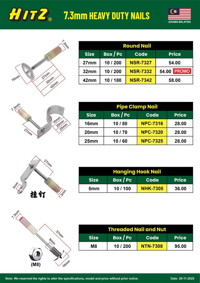 | Product SKU | 7.3mm HEAVY DUTY NAILS |