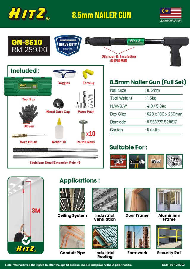 | Product SKU | 8.5mm NAILER GUN HITZ GN-8510 |